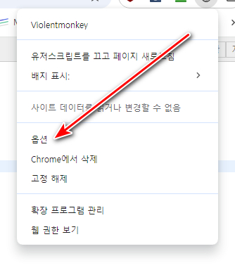 Violentmonkey 아이콘에 마우스 우클릭 합니다.