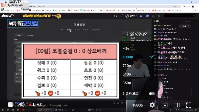 모든 설정이 완료 되었으며 이제 바로 자신이 원하는 아프리카tv의 스트리머 방송을 시청해보세요. 그러면 바로 1080p로 시청하실 수 있습니다.
