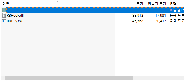 RBHook.dll 파일과 RBTray.exe 파일이 있는데 적당한곳에 폴더를 위치 해놓고 시작프로그램에 등록해놓습니다. 않그러면 매번 실행해야하기때문에