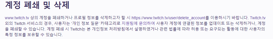 이로써 트위치 계정 삭제 방법에 대해 안내 해드렸습니다. 트위치 계정 탈퇴 방법이 궁굼하신분이라면 위 방법 따라하셔서 탈퇴하시면 됩니다.